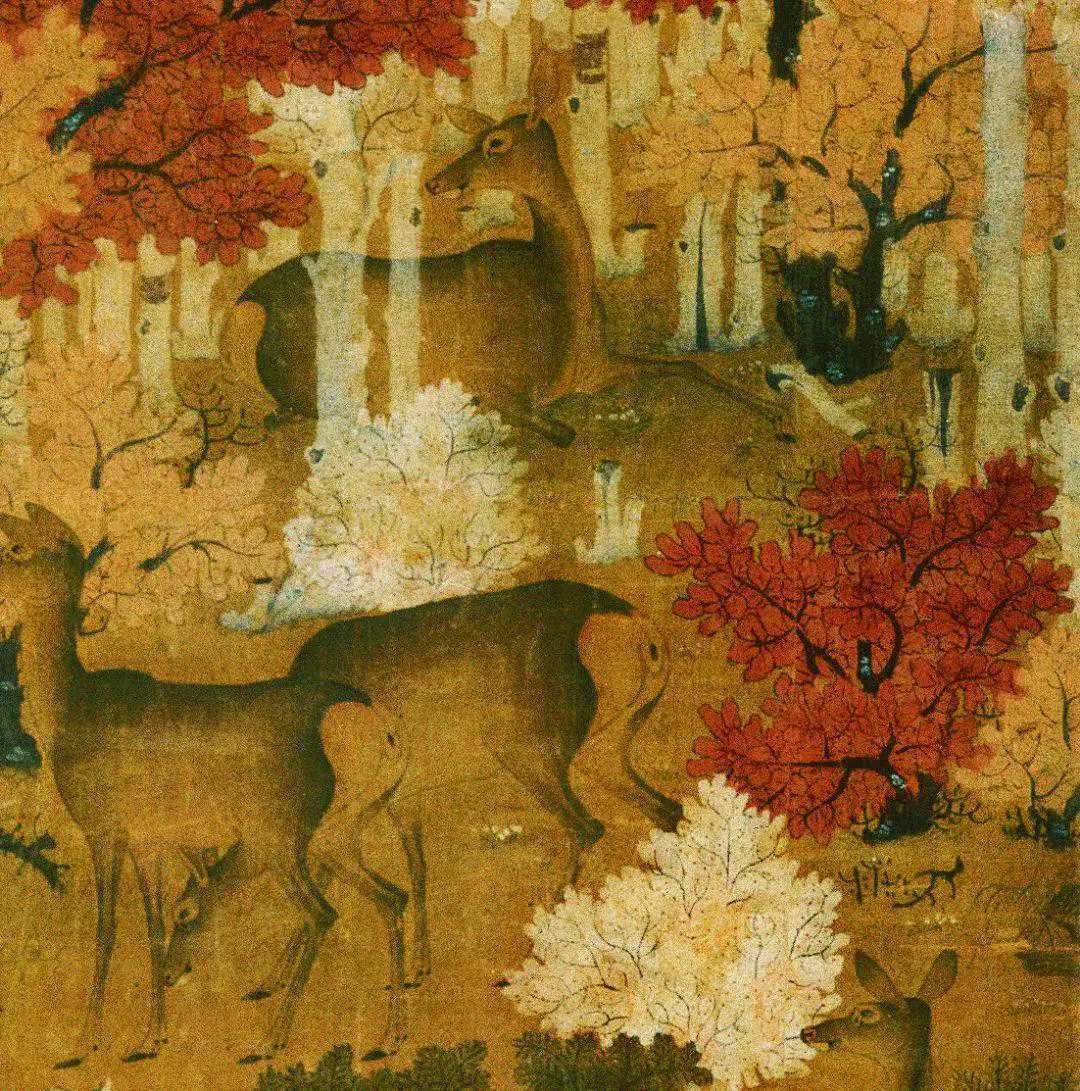 (《台北故宫文物月刊》第一卷第二期《丹枫呦鹿图和秋林群鹿图》李霖灿)