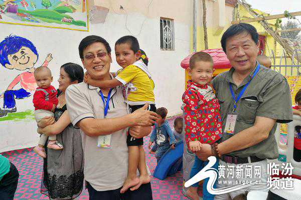 刘宁生多次赴新疆采风、创作、与当地少数民族进行文化艺术交流,无偿赠画,增进友谊。图左为刘宁生与当地小朋友做游戏。