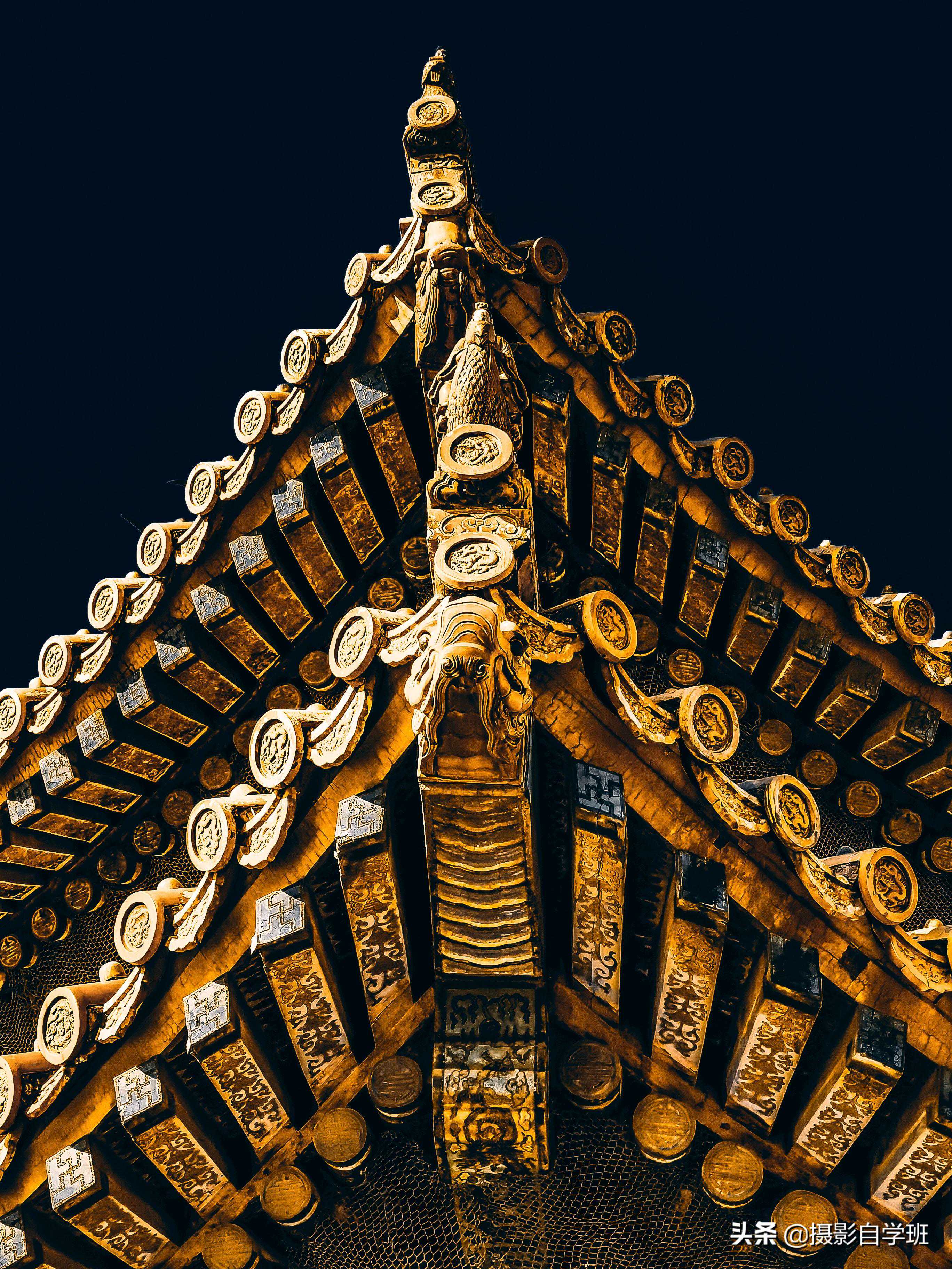(1)当建筑暗时,我们要等待古建筑上的灯亮起来,有了光,古建筑才会有亮,剩下就是怎么拍的问题了。