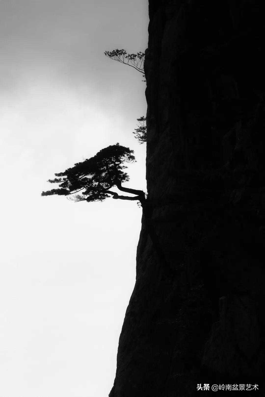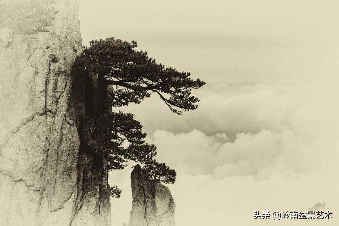 与柏类经常被人为地制作成舍利干以增加苍老感不同,松树则是以荒皮老树的形象来体现古朴苍劲。松树作品,干枝要有起皮状,给人一种沧桑感,跟舍利干的做老相比,就更显自然一些。而枝头上的嫩叶更是跟这古老的树桩形成鲜明的对比,这种视觉上的反差形成一种强烈的对比,显现出松的古而不老的意境,所以在松树盆景创作时要特别注意对树皮的保护。荒皮老树,针叶短小,苍翠浓绿,树干古朴苍劲,枝节短且虬曲,盘根错节态势好,这是好作品起码要具有的几个基本要素。