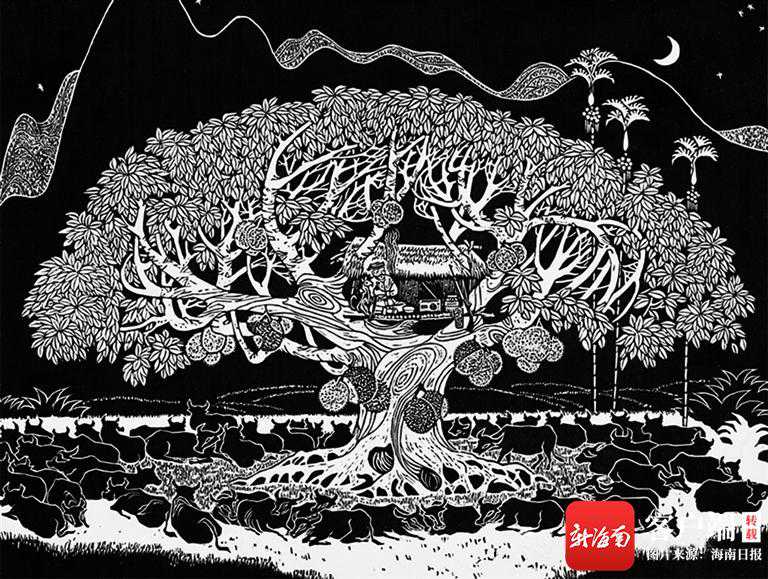 回顾早年的海南美术创作,当数版画成就较高,例如邓子芳的《新月》、吴地林的《胶林的路》、陈茂叶的《黎家女》、张地茂的《海南风》、王统照的《甜蜜的季节》、董旭的《建设的旋律》、徐鸿才的《崖州城景观图》、杨全发的《晨鸣》。他们和陈桂花、王春雄等都是当时的版画作品创作健将。特别是1988年以后,郭红雨、陈为云、王楠、周杰等中青年美术家在老一代版画家的传统风格中成长起来,他们都创作过不少富有地域特色的版画作品,尤其是郭红雨,善于把北大荒版画和海南的黑白进行结合。