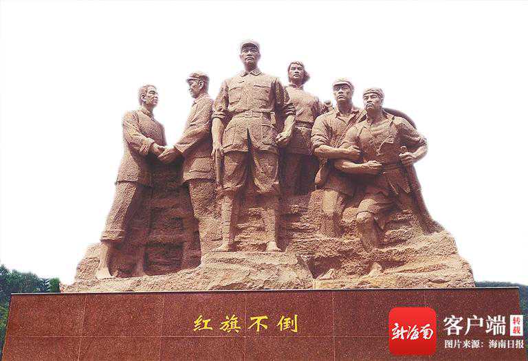 在雕塑方面,陈学博创作的《华侨回国抗战纪念组雕》深刻表现了华侨抗战的历史:当祖国面临日寇入侵,大批旅居东南亚的爱国侨胞,响应号召回国回乡加入抗战的行列,从而成就了中国华侨回国抗战服务这段可歌可泣的辉煌历史。陈学博的另一纪念雕塑《红旗不倒》表现了琼崖革命23年红旗不倒的精神。此外,王可赵的石雕《李光》《赵鼎》等作品立于五公祠,他以朴实的艺术手法刻画了古代贤达们,让他们的故事得以永久流传,再现了海南文脉的久远赓续。