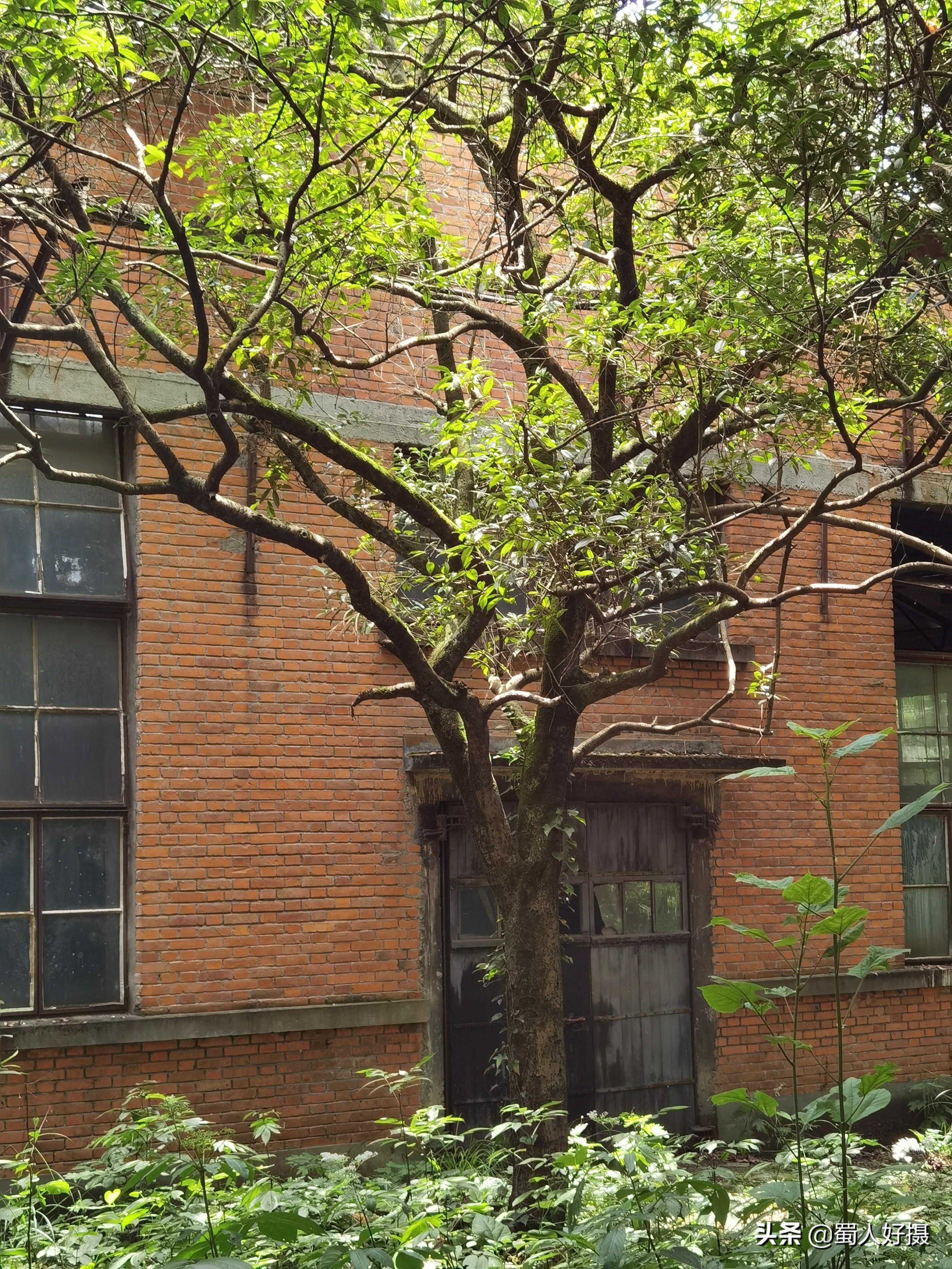 三座工厂的生活区职工宿舍,锦江厂的自然条件比另两座差些,因为找不到平地,房子都是顺山势而建,全部由红砖垒砌。据观察,锦江厂的生活区现在是基本无人居住的状况,宿舍楼已现颓势,许多都被野草藤蔓遮掩,也许再过一二十年,这片红砖房屋就会消逝在山林荒草之中了。