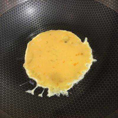 2、锅里烧油油热倒入鸡蛋翻炒几下