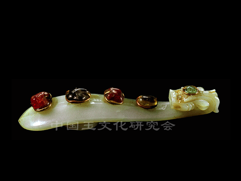 明代白玉龙首嵌宝石带钩