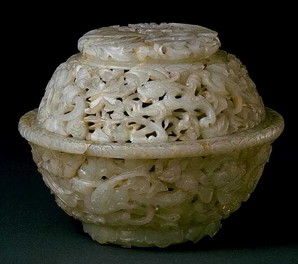 清中期和田玉镂雕螭凤牡丹花薰