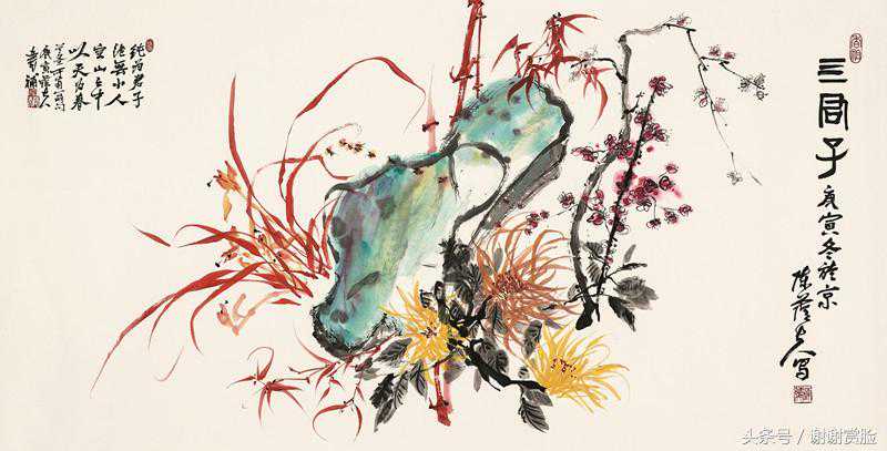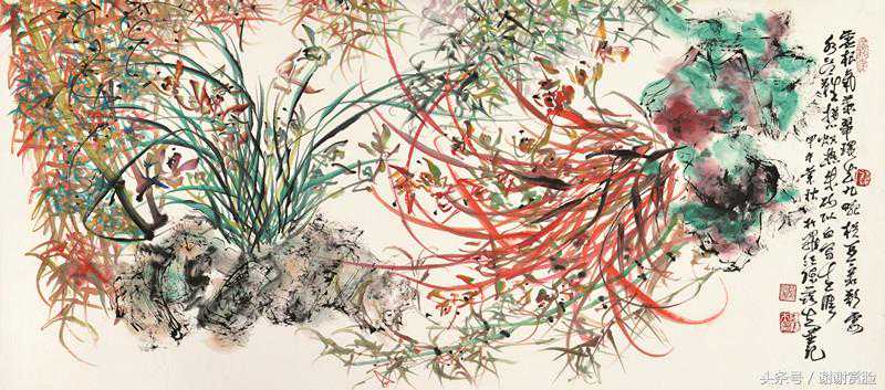 陈荫夫在继承传统的同时,大胆将朱砂等艳彩,融入写兰之中,这使得他的兰花作品更加别开生面,丰富多彩。