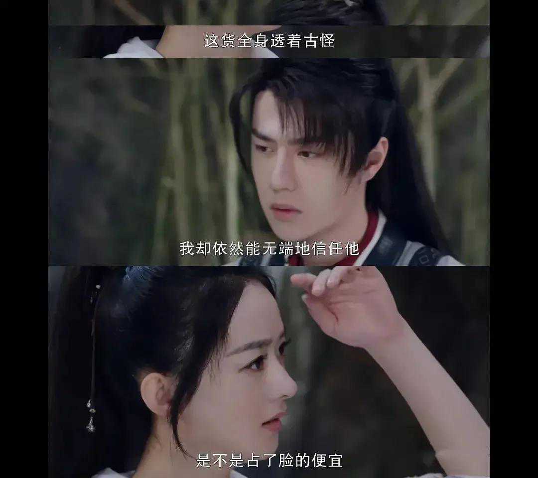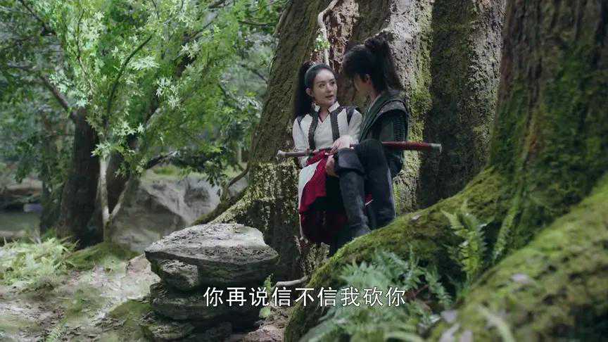 在树林里谢允抱着被点了穴道的阿翡,还吐槽太沉,被阿翡威胁:再说信不信我砍你!