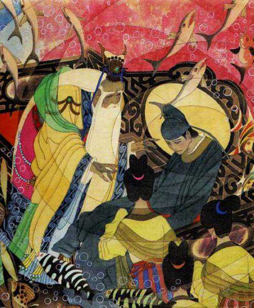 《柳毅传书》故事梗概秀才柳毅进京赴试,途经泾河岸边,见一牧羊女掩面痛哭,询其故,方知其为洞庭龙女三娘,受夫婿泾河恶龙所辱,被贬于此。柳毅闻言不平,乃仗义传书洞庭,三娘因而得救。三娘之叔钱塘君欲为侄女招赘柳毅为婿,柳坚拒。湖滨惜别,柳毅为情所困,黯然而别。柳归家后,见邻女三姑酷似龙女,思三娘之心更殷。三姑感其情,诉化身之谜,二人终成眷属。洞庭龙君,家有娇女,敢爱敢恨,名曰三娘。夫君黑龙,肆虐张狂,禁洒甘露,黎民遭殃。为救苍生,龙女播雨,激怒黑龙,被贬牧羊。书生柳毅,赴京赶考,途经泾河,巧遇三娘。听其哭诉,深为震撼,放弃赶考,传书龙王。大王优柔,龙母情长,二叔发兵,救回三娘。水晶宫内,龙女谢恩,倾心相见,情深意长。二叔作媒,招柳为婿,柳毅虽爱,忌于谗谤,更念道:吾虽一书生,施恩岂图报!三娘送柳,回返人寰,借物舒怀,依依断肠。龙女化身,二叔相伴,巧作三姑,寄寓渔乡。几番试探,几番周折,秦晋之和,世人景仰。真可谓:善良正直牧羊女,扶危济困俊书生,仙凡连理传佳话,世代悠扬唱馨声。《柳毅传书连环画》资料作者简介戴宏海,1941年生于浙江省温州市。温州书画院专业画家,国家一级美术师。温州市美术家协会主席,浙江省美术家协会副主席,浙江画院中国工笔画研究所艺术委员会艺术委员,中国工笔画学会理事,中国美术家协会会员。享受国务院颁发的政府专家特殊津贴。2003年12月出席第六届全国美术家代表大会。2005年任“2005年全国中国画作品展”组委会副主任。温州市人民政府授予第四届、第六届文艺创作最高奖——金鹿奖。戴宏海于20世纪50年代在温州市绘画会学习三年,60年代初在上海师承画家李成勋老师学习中国画传统技法三年;后长期在温州印染厂任设计室主任,90年代初温州书画院成立,调入书画院成为专业画家,期间曾参加文化部第四届工笔重彩画高级研究班学习结业。戴先生擅长中国工笔人物画,作品曾25次入选文化部、中国美术家协会主办的全国性美展,其中有7件作品入选第六、七、八、九届全国美展。获国家奖8次,获省奖15次,国家收藏2件。3件作品收入《中国现代美术全集》,出版有《戴宏海画集》、《戴宏海工笔人物画精选》。1991年应邮电部约稿,参加《三国演义》系列邮票设计投标竞争,夺得创作权,1992、1994、1998年先后发行三组邮票和小型张,前两组连续获得日本国评选1992年、1994年中国最佳邮票第一名。1998年《三国演义》邮票第五组首日封获1997-1999年全国最佳集邮品评选最佳首日封奖。2001年发行《郑成功收复台湾三百四十周年》纪念邮票。1989年《柳毅传书》工笔重彩连环画入选第七届全国美展;获第四届全国连环画评奖三等奖,参加获奖作品展览。【附录】《柳毅传》【唐】李朝威著仪凤[唐高宗年号676-678]中,有儒生柳毅者,应举下第,将还湘滨。念乡人有客于泾阳者,遂往告别。至六七里,鸟起马惊,疾逸道左;又六七里,乃止。见有妇人,牧羊于道畔。毅怪视之,乃殊色也。然而蛾脸不舒,巾袖无光,凝听翔立,若有所伺。毅诘之曰:“子何苦而自辱如是?”妇始楚而谢,终泣而对曰:“贱妾不幸,今日见辱问于长者。然而恨贯肌骨,亦能愧避,幸一闻焉。妾,洞庭龙君小女也。父母配嫁泾川次子。而夫婿乐逸,为婢仆所惑,日以厌薄。既而将诉于舅姑;舅姑爱其子,不能御。迨诉频切,又得罪舅姑。舅姑毁黜以至此。”言讫,嘘唏流涕,悲不自胜。又曰:“洞庭于兹,相远不知几多也!长天茫茫,信耗莫通,心目断尽,无所知哀。闻君将还吴,密通洞庭,或以尺书,寄托侍者。未卜将以为可乎?”毅曰:“吾,义夫也。闻子之说,气血俱动,恨无毛羽,不能奋飞。是何可否之谓乎!然而洞庭,深水也。吾行尘间,宁可致意耶?唯恐道途显晦,不相通达,致负诚托,又乖恳愿。子有何术可导我耶?”女悲泣且谢,曰:“负载珍重,不复言矣。脱获回耗,虽死必谢!君不许,何敢言;既许而问,则洞庭之与京邑,不足为异也。”毅请闻之。女曰:“洞庭之阴,有大橘树焉,乡人谓之‘社橘’。君当解去兹带,束以他物,然后叩树三发,当有应者。因而随之,无有碍矣。幸君子书叙之外,悉以诚心之话倚托,千万无渝!”毅曰:“敬闻命矣。”女遂于襦间解书,再拜以进,东望愁泣,若不自胜。毅深为之戚。乃置书囊中,因复问曰:“吾不知子之牧羊,何所用哉?神祗岂宰杀乎?”女曰:“非羊也,雨工也。”“何为雨工?”曰:“雷霆之类也。”毅顾视之,则皆矫顾怒步,饮甚异,而大小毛角,则无别羊焉。毅又曰:“吾为使者,他日归洞庭,幸勿相避。”女曰:“宁止不避,当如亲戚耳。”语竟,引别东去。不数十步,回望女与羊,俱无所见矣。其夕,至邑而别其友。月馀,到乡还家,乃访于洞庭。洞庭之阴,果有社橘。遂易带,向树三击而止。俄有武夫出于波间,再拜请曰:“贵客将自何所至也?”毅不告其实,曰:“走谒大王耳。”武夫揭水指路,引毅以进,谓毅曰:“当闭目,数息可达矣。”毅如其言,遂至其宫。始见台阁相向,门户千万,奇草珍木,无所不有。夫乃止毅,停于大室之隅,曰:“客当居此以伺焉。”毅曰:“此何所也?”夫曰:“此灵虚殿也。”谛视之,则人间珍宝,毕尽于此。柱以白璧,砌以青玉,床以珊瑚,帘以水精,雕琉璃于翠楣,饰琥珀于虹栋。奇秀深杳,不可殚言。然而王久不至。毅谓夫曰:“洞庭君安在哉?”曰:“吾君方幸玄珠阁,与太阳道士讲《火经》,少选当毕。”毅曰:“何