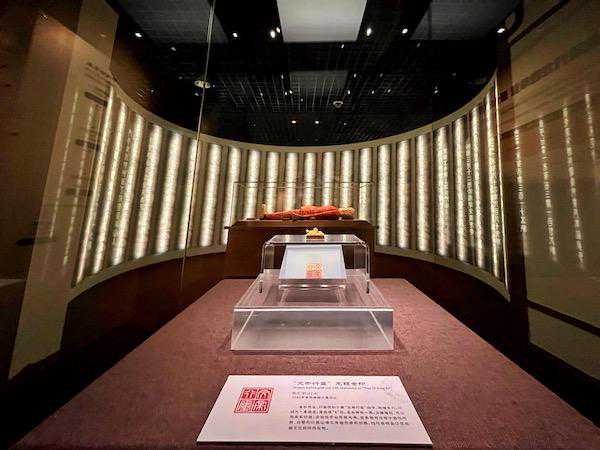 其中展出包括目前已发现的唯一的完整丝缕玉衣,唯一的汉代龙钮帝玺、最大的西汉金印“文帝行玺”龙钮金印,2022年北京冬奥会金牌设计原型之一的双身龙纹青玉璧,反映早期“海上丝绸之路”贸易交流的印花铜板模、四连体铜熏炉,以及被列入“首批禁止出国(境)展览文物”的5件汉代屏风构件等,堪称精品荟萃、国宝云集。