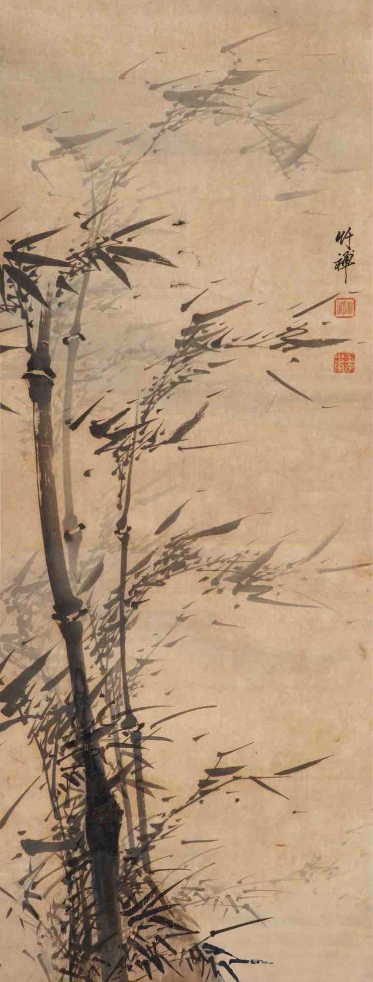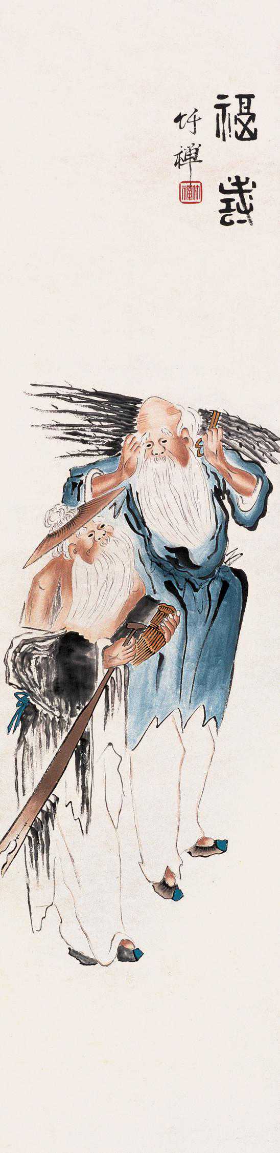 竹禅(1825~1901)清朝著名僧人,俗姓王氏,号熹公,清朝梁山县仁贤镇(今重庆市粱平县)人,曾住上海龙华寺。14岁出家于梁山报国寺,受戒于双桂堂,一生云游大江南北,晚年为梁平双桂堂第十代方丈,20岁时在梁平县城北门报国寺削发为僧,是晚清遐迩闻名的画坛怪杰。擅长书画、金石雕刻、绘画自成一格,水墨人物、山水、竹石,人谓别成一派,题画诗亦佳。其书画作品收入《海上墨林》、《韬养斋笔》、《益州书画录》等书中,著有《画家三昧》6卷传世,其名载入《中国美术家名人辞典》。他长期游历名山大川,在北京、上海、重庆等地以卖画为生,一生数次回梁平。咸丰六年(1856)前后回到梁平,赠双桂堂贝叶经、舍利子等珍稀佛教文物。双桂堂为此修建一座舍利塔,至今犹存。光绪二十四年(1898)从重庆汇银1000两给双桂堂,解决当时双桂堂的经济困难。次年双桂堂派人到重庆请竹禅回梁平主事,他欣然应允。光绪二十六年(1900)春,七十六岁高龄的竹禅带着他一生积存的数箱字画,回到梁平,接任方丈,于年底圆寂。其墓有联云:“携大笔一支纵横天下,与破山齐名脍炙人间”。
