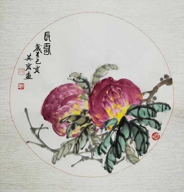 邵其宏老师的作品大多体现了自然之美、淡泊之美、简约之美,作品构图巧妙,画面素雅,展现出画家极高的美学素养。尤以哪幅葡萄为主题的小品画,虽是小品,却看到了有茂密的绿色枝叶,枝叶中挂着一串串色彩不一的葡萄,有玫瑰红色的,紫色的,暗红色的,有的葡萄还是两种颜色:左半边是暗红色的,右半边却成了淡淡的玫瑰红色,似乎真的有阳光照射,透过枝叶斑驳地照耀在这些晶莹剔透葡萄上,是哪知样的鲜亮,美丽极了。葡萄梗上挂着的几面翠绿叶子,恰似一顶顶小巧玲珑的遮阳伞……画面生动,有很好的观赏价值。