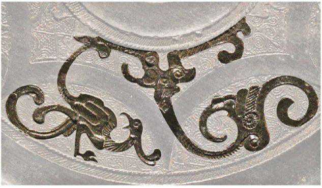 纵观秦镜制式,在存世的数百面秦镜中,凤纹仅为龙纹的十分之一,查找资料可知不同者多、同类者少。本文中图5、图9、图12属同一类,皆为凤穿二段连弧纹,羽翼漫卷盎然,姿态肆意洒脱。比较而言,图12的凤纹较为简约不如图5、图9精细,但整体看来,皆气势磅礴,舒畅淋漓,经努力查找。目前此类镜也仅现这3面,其余凤纹同类者较少。