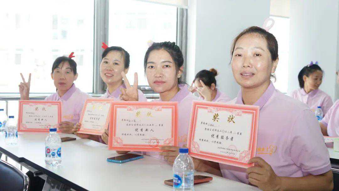 随后,主持人分别宣读了第二季度优秀新人、优秀服务者名单,与会领导为获奖家政员代表颁发了奖状。