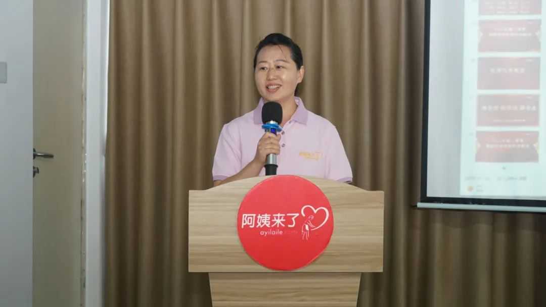 家政员李海微、李玉梅、魏洁、李付梅作为代表上台发言,分享了她们的服务经验,传递了她们的真实心声,表达了她们对公司以及客户的感激,赢得台下阵阵掌声。