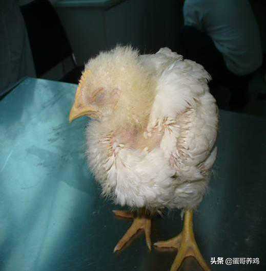 1、鸡慢呼典型症状:病鸡上下眼睑肿胀,眼角有气泡,流鼻液,有呼吸啰音,病重鸡眼睛向外突出-“金鱼眼”;解剖后看到气囊壁混浊、上有黄色干酪物,腹腔内肠管间有大量泡沫。