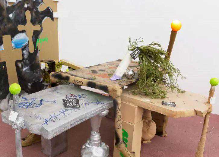 周轶伦:基本都是我要丢弃的东西,或者说就是我们日常会分为“垃圾”的那一类物品。还有像展览中所使用的地毯是出自艺术家赵要2018年在北京公社的个展《有神的信号,有神的信号》,它先为艺术家梁硕个展《景区》所使用,我又在这次展览中使用。