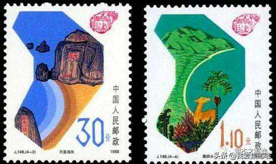 和1984年的的“牡丹亭”邮票,设计如出一辙,邮票名称“西厢记”和“牡丹亭”都是采用长方形的篆刻印章,放在票幅的边角上,就形如中国书画中的压角印章,别具一格;
