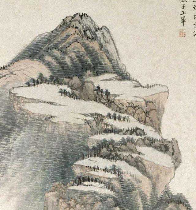 本幅款署:"岁己酉,芝翁先生春秋五十,翬寄迹金陵,阙跻堂称祝之礼。今年春,令嗣茂京先生南宫高捷,余方倦游归,闻报雀跃,亟图此幅为先生寿,并以致茂京得雋之贺云。庚戌闰月既望,虞山石谷子王翚。"钤"王翚之印"朱文印。"庚戌"即清康熙九年(1670年),作者时年39岁。