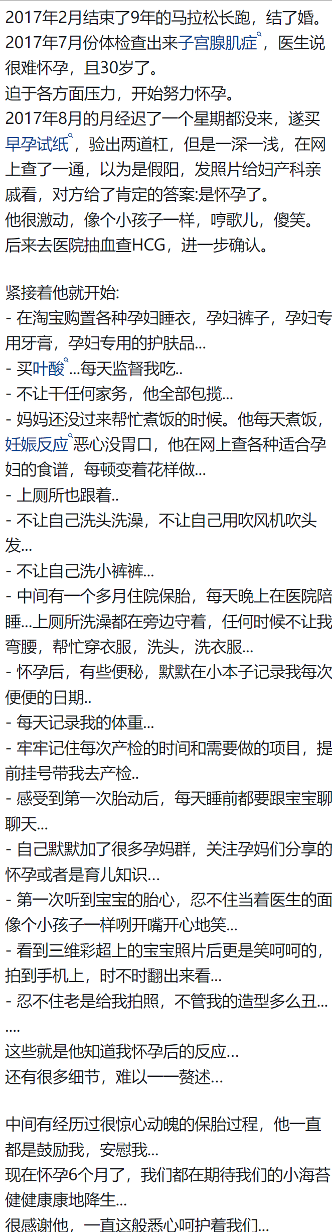 本来想顺手转给我老公看看,转念一想他其实已经做的挺好了,虽然比不上你老公。我俩意外怀孕,有那么多的不知所措,事前没做任何准备一切都是慢慢摸索着来,我觉得只要他有心对我们好就成,至于能做到什么程度,毕竟每个人年纪阅历,细心程度是不同的。