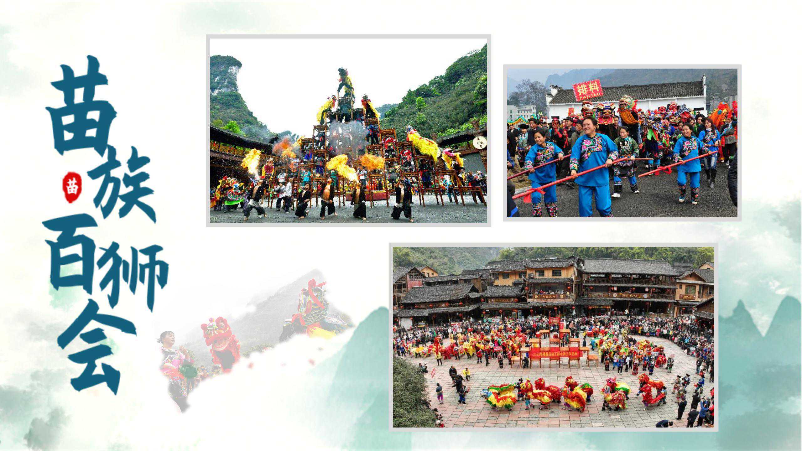 第二个是苗族百狮会。苗族鼓舞震天响,矮寨百狮会天下,喜登宝塔,傲视群雄,在矮寨镇德夯村,看苗族“百狮会”汇成了欢乐的海洋,与数千名各族同胞欢聚苗寨,共沐祥和、欢快、喜庆,获得身心的双重愉悦。