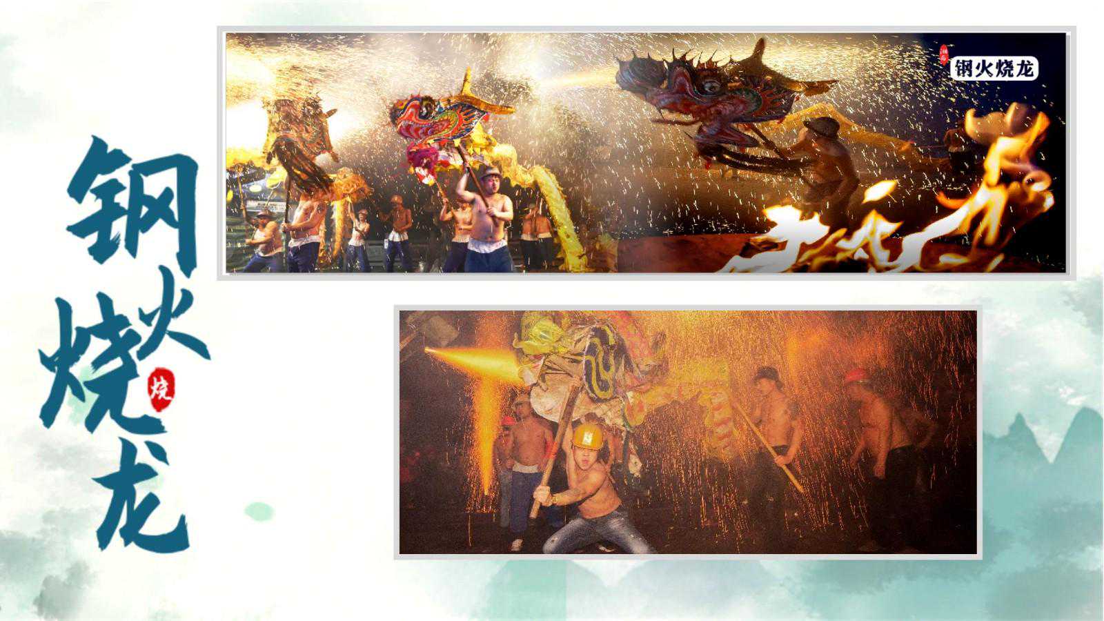 第四个是钢火烧龙。笙歌声沸满春城,火树银花巧斗明,钢火烧龙是湘西民间闹元宵时的狂欢习俗,全程集音乐、舞蹈、文化于一体,蕴藏着高超的民间艺术,是摄影师不可错过的“大片”盛宴。看一场马颈坳、河溪的钢火烧龙,见证湘西汉子的勇往直前,用激情、狂野的方式点燃吉祥首府狂欢之旅。