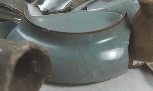 因此,修内司官窑在元代期间有两个复烧阶段。在二次复烧阶段里面,找到了类似于这样的哥窑瓷片,这些元代窑层中的产品,就是仿修内司官窑而来的,虽然还有修内司官窑的光环,但是它的实质不在,精神不在了。从器型上看与当时的官窑精细程度差了很多,制作工艺也相对相对下降。