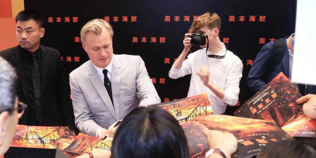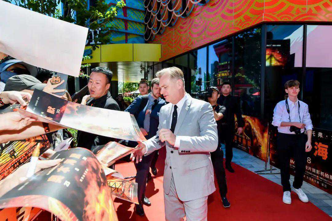Anyway,签名和电影一样深奥的诺兰,顶着当天31°的高温(体感温度更高),也坚持身穿银灰色西装配深色领带,和一旁的保安小哥一样敬业,坚守(发际线消失的)英国绅士最后的倔强~
