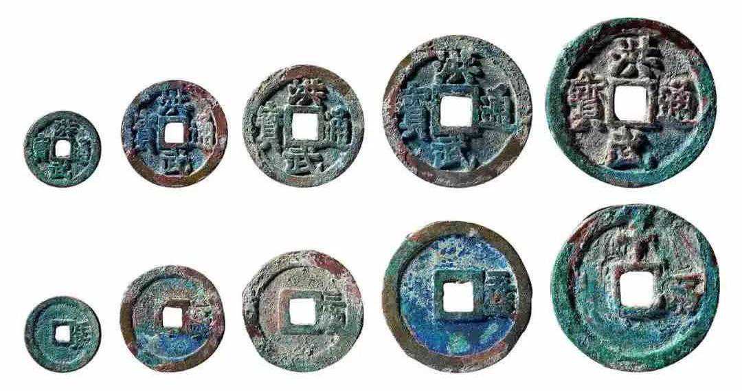 朱元璋推行洪武通宝记重钱,从而统一了全国的货币,结束了元末以来的混乱状态,对促进当时社会经济的发展起到了积极的作用。