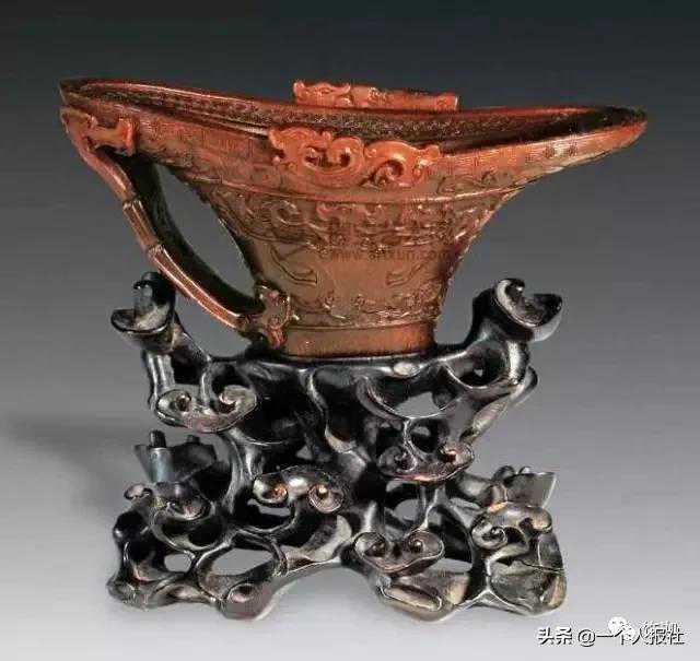 109--清·康熙犀角雕饕餮纹夔龙耳杯