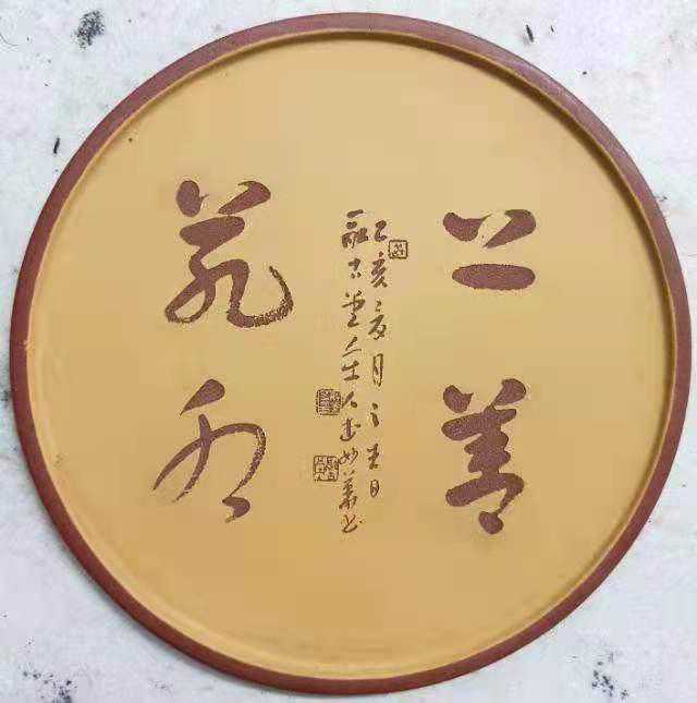 妙华写字包括别人慕名索字,他都是来者无拒,一视同仁,无偿应之赠之。前几年一天,我在他工作室聊天,一李姓熟人引来戴眼镜、文质彬彬的女士来向妙华求字,引者出去后,女士落落大方且话话颇多,但数处称呼把妙华姓名都说错,妙华平静地说:“你都不知道我姓名就来要字”,女仍老练微笑却无半点歉意,妙华遂不发一言,写了幅六尺对开横幅送她,字仍为上佳。我睹此况,感觉妙华君真乃心平气和也。