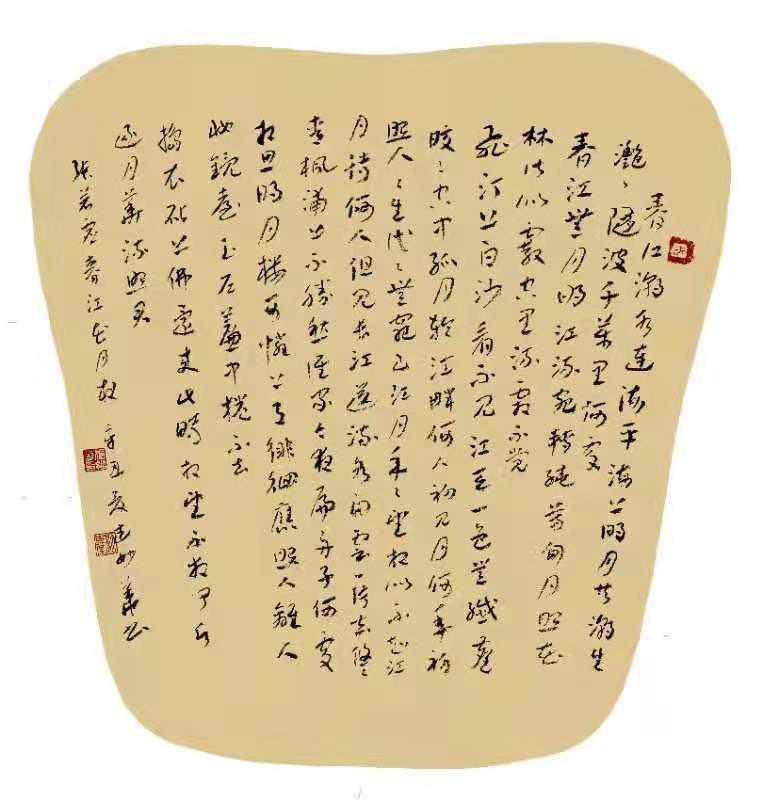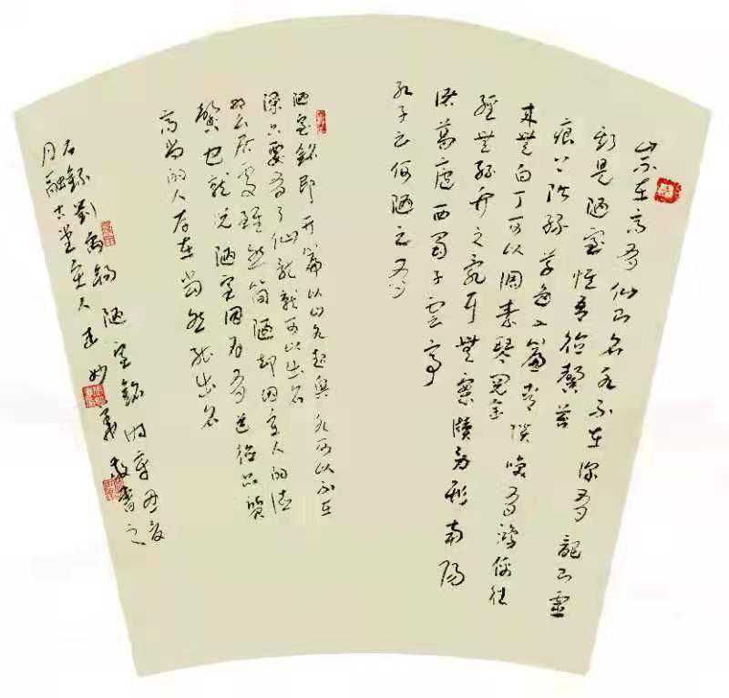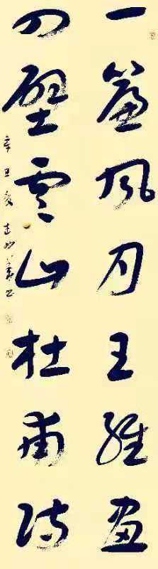 笔者之说,难免偏颇,但绝无扬章抑今之心和贬低其他书体之意。中华书坛,百花竞放,各具其美,美美与共,方是正道。余既观妙华写作已久,也应归纳小结,不揣冒昧,放肆摡括:妙华书法属传统高雅古典一派,尤以草书为佳,溶汉隶、简牍、章今于一炉,荟牵丝、顿挫、放宕为一体,兼章兼今,有圆有方,遒劲中见质朴,中和里显凝重。使转提按心手并运,疾涩浓淡天然多姿。