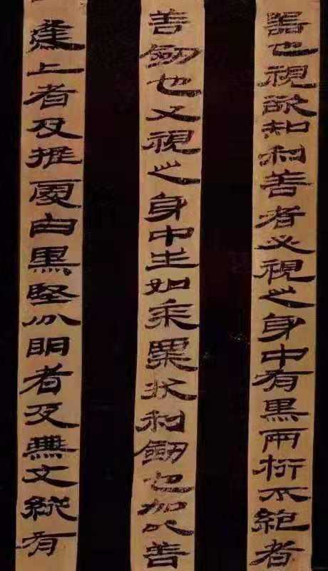 三是自然之气。他研习多年的书帖,大部都出自于自然天趣的秦汉书简、摩崖碑刻,诸体书作的形体、运笔、用墨、收放皆是如此,其特点风韵早已入脑入心、如影随形,书法自有方峻、朴拙、宽博、活泼之美!因此,他的作品写之于书斋,挂之于庭堂,出于墨、见于纸,但却有山野之气息,草木之氛芳,流沙之遗韵,摩崖之痕迹,碑刻之凿印。不是数十年潜心修为,要有此境界是难以想象的。