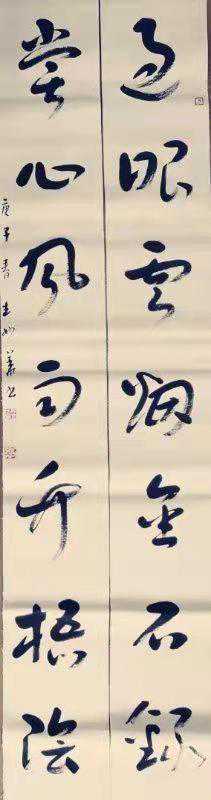妙华讲,越写越感到中国书法之宏富和伟大,先贤水平之奇妙和高雅,我们一辈子再咋努力都不可能有创新,超越更是痴人说梦。我理解他的感受,哪位诗人能说超越屈原和唐诗?哪位学者文人能说超越司马迁、唐宋八大家?英明神武的唐太宗,本身是大书法家,他撰《圣教序》却让怀仁从王羲之字中大海捞针,25年后集王字1900多个刻石立碑。留给我们不光是文章和书法,还有崇拜、谦虚和辉煌。面对前贤大家的精妙笔墨,谁也不能轻言超越。然,妙华之言固然有理,也充分体现了他对先贤的崇拜和对中国书法渊源的敬畏,但习练半生,其作品想没有自己面目也是很难。妙华的一些作品,与前贤墨迹对照比较,我之愚眼所看,古朴、拙劲稍减,可能是书写速度加快之故,但从其书法作品总体上讲,完全可以称得上情驰神怡,会合南北,刚用柔显,华因实增,由简朴而生雄美,因流畅而出秀雅。大可肯定和赞许!