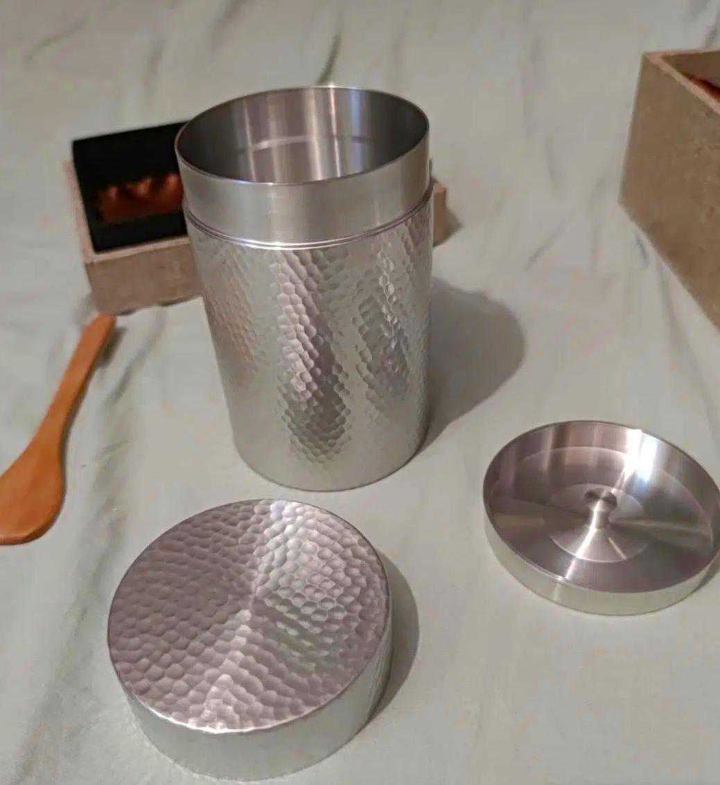 纯锡的茶叶罐有很好的延展性,不仅密封性好,而且可以做出各种各样美丽的花纹,这种锤纹的茶叶罐就很漂亮,如果外出旅游或出差可以带一个小的迷你的茶叶罐,带个2两茶叶,放在包里无论到了哪里,随时随地可以喝茶,也是很幸福。