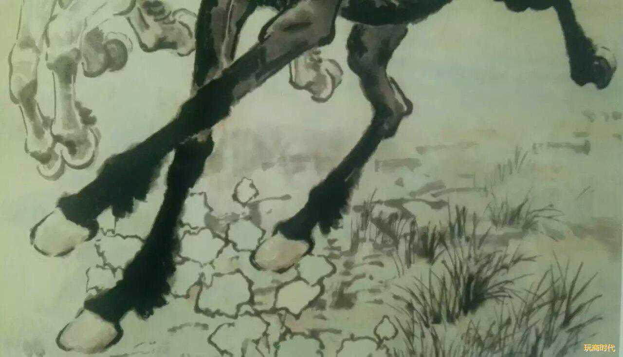 军旅画家出身的宋连启,则更进一步,把留白运用到马蹄上,已凸显“战鼓声声马蹄疾"之意。