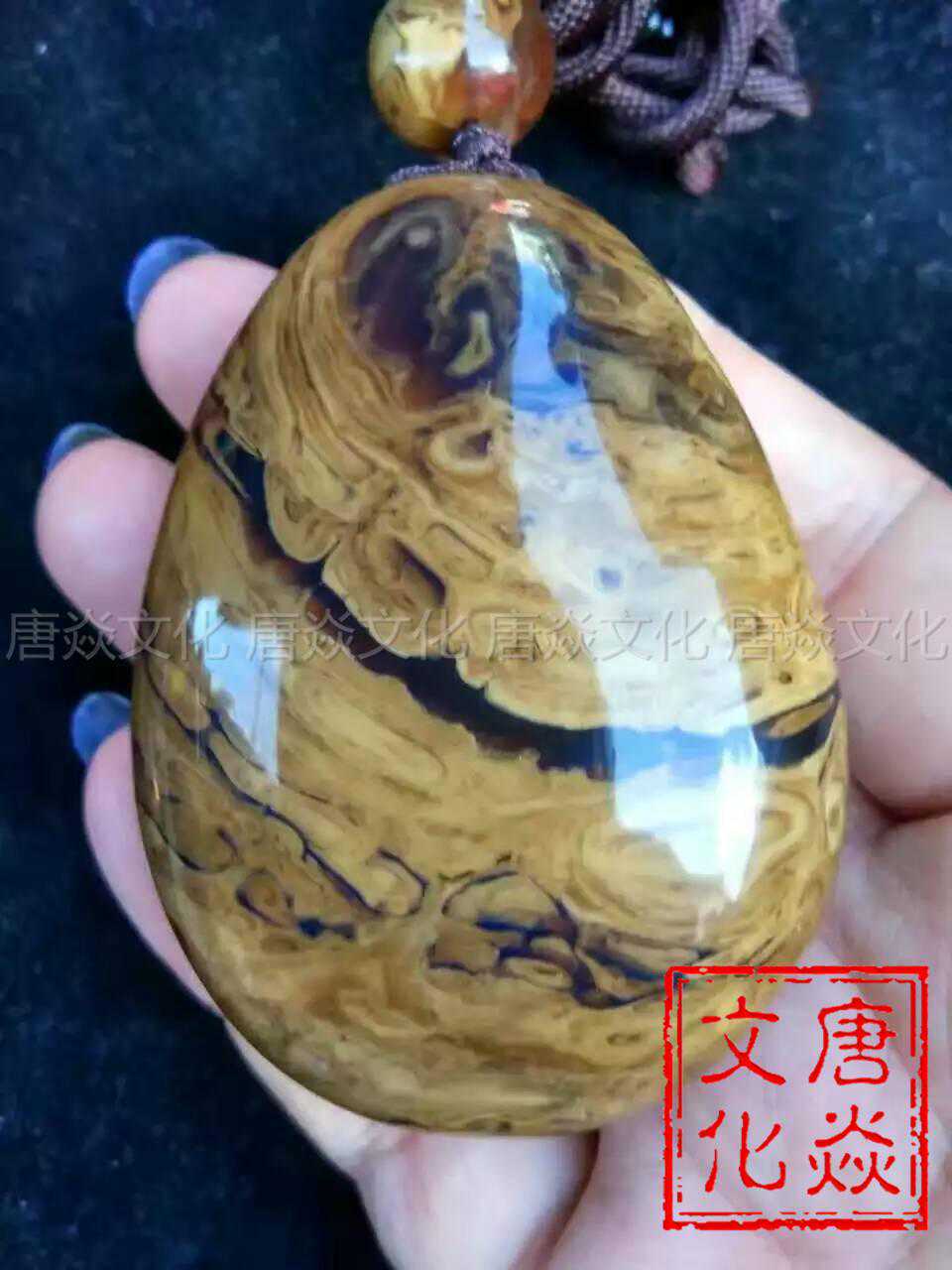 根珀是一种不透明的琥珀,内部含有了方解石的成份,因此在琥珀中形成了深棕色交杂白色的斑驳纹理,也有乳黄与棕黄交错的颜色,经过抛光则呈现大理石般的美丽纹理。