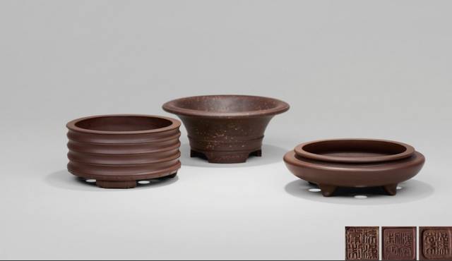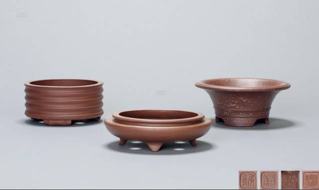 民国裴石民製紫砂花盆(三件)