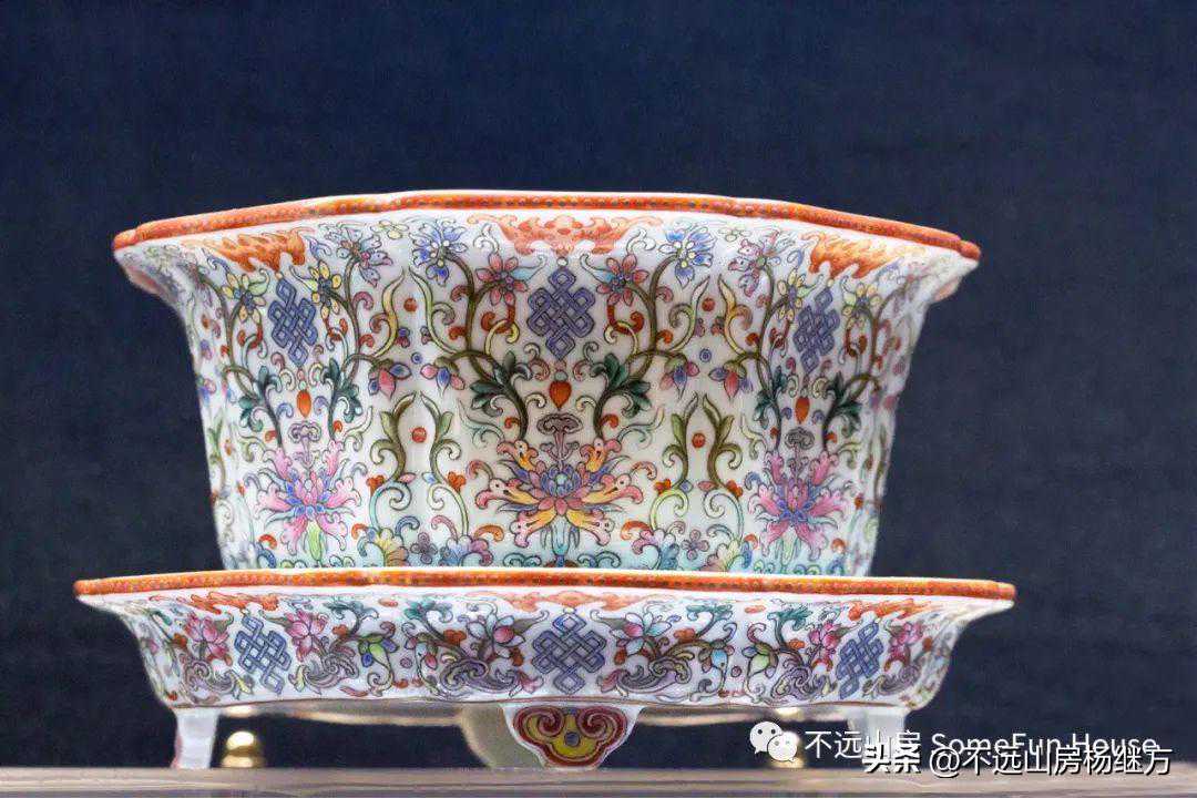 上海博物馆东西汇融展展出的乾隆粉彩阳伞夫人图杯碟