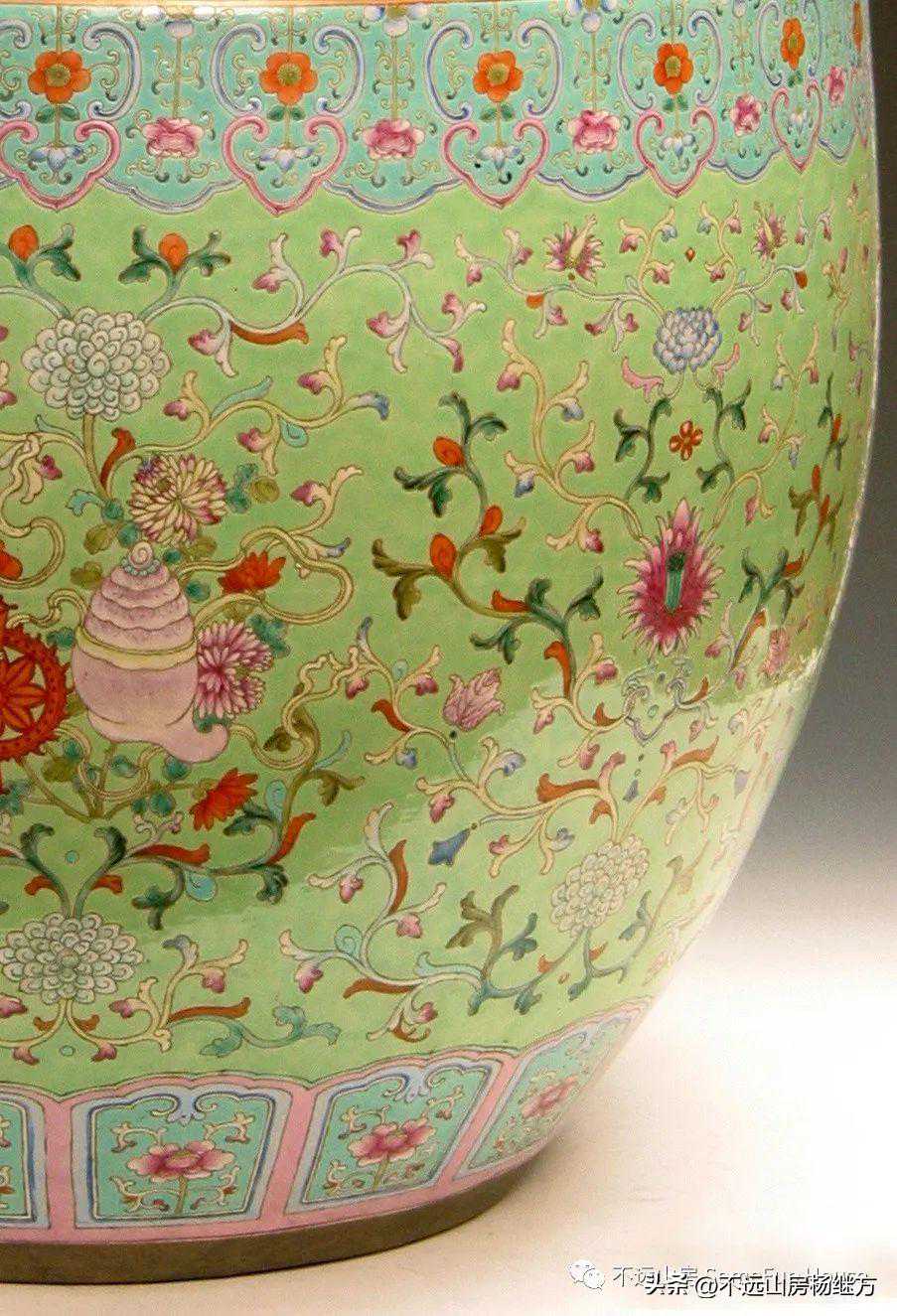 沈阳故宫博物院藏清乾隆绿地粉彩花卉八宝大鱼缸