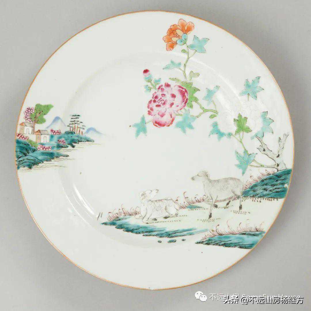 英国布里斯托博物馆藏雍正-乾隆粉彩花卉双羊图盘