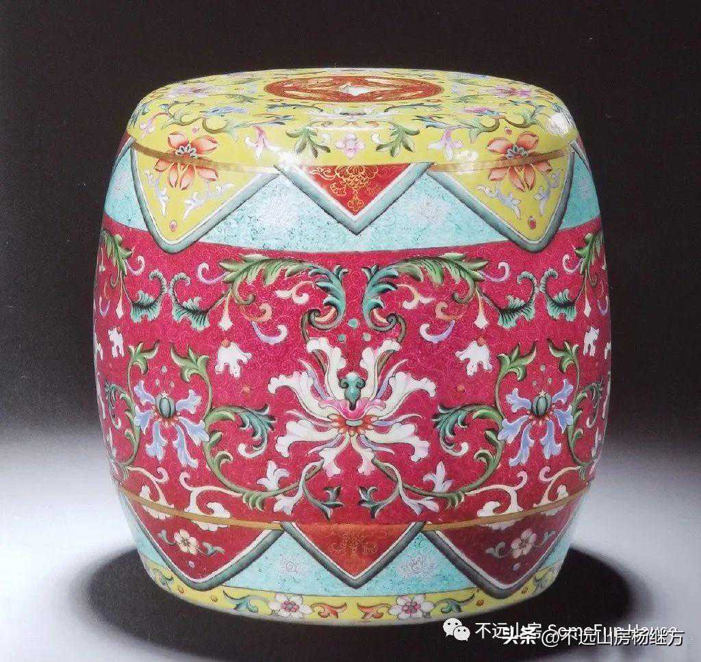 香港苏富比2008春的乾隆胭脂红地粉彩缠枝花卉纹绣墩