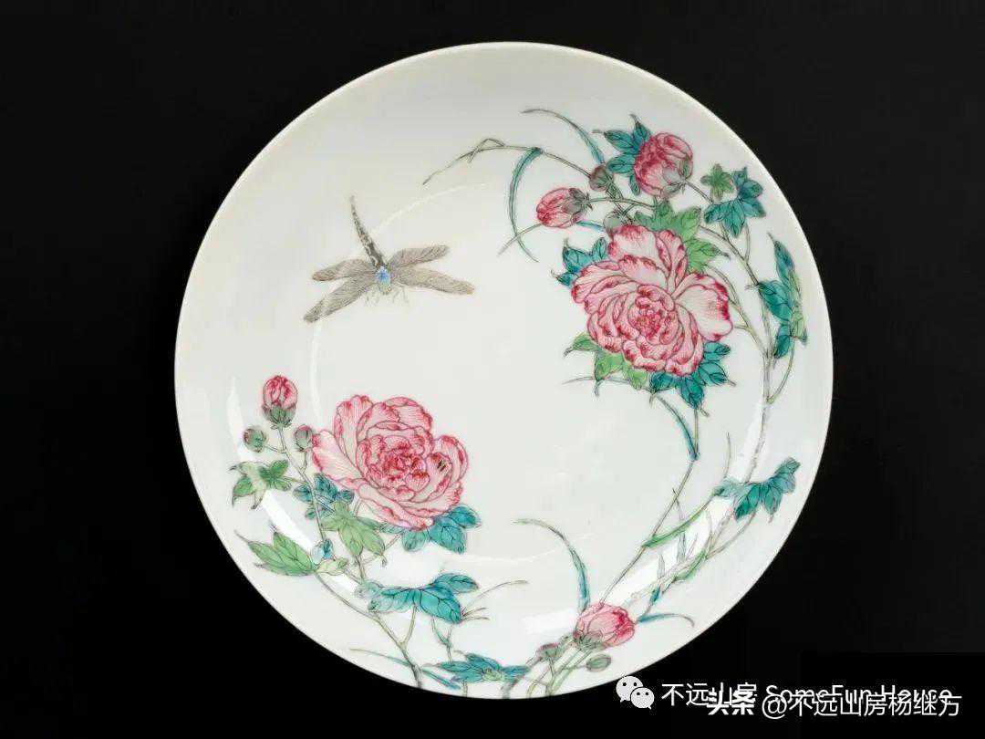 苏格兰国家博物馆藏清乾隆粉彩过枝芙蓉蜻蜓纹盘
