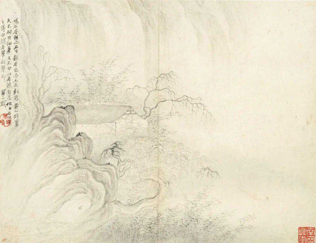 观弘仁作品,有倪瓒之感,但格调又不同于倪瓒,总觉得画中少了几许荒凉寂寥之境,多了几分清新之意。