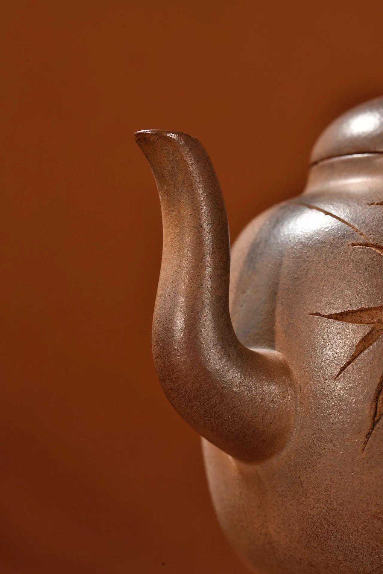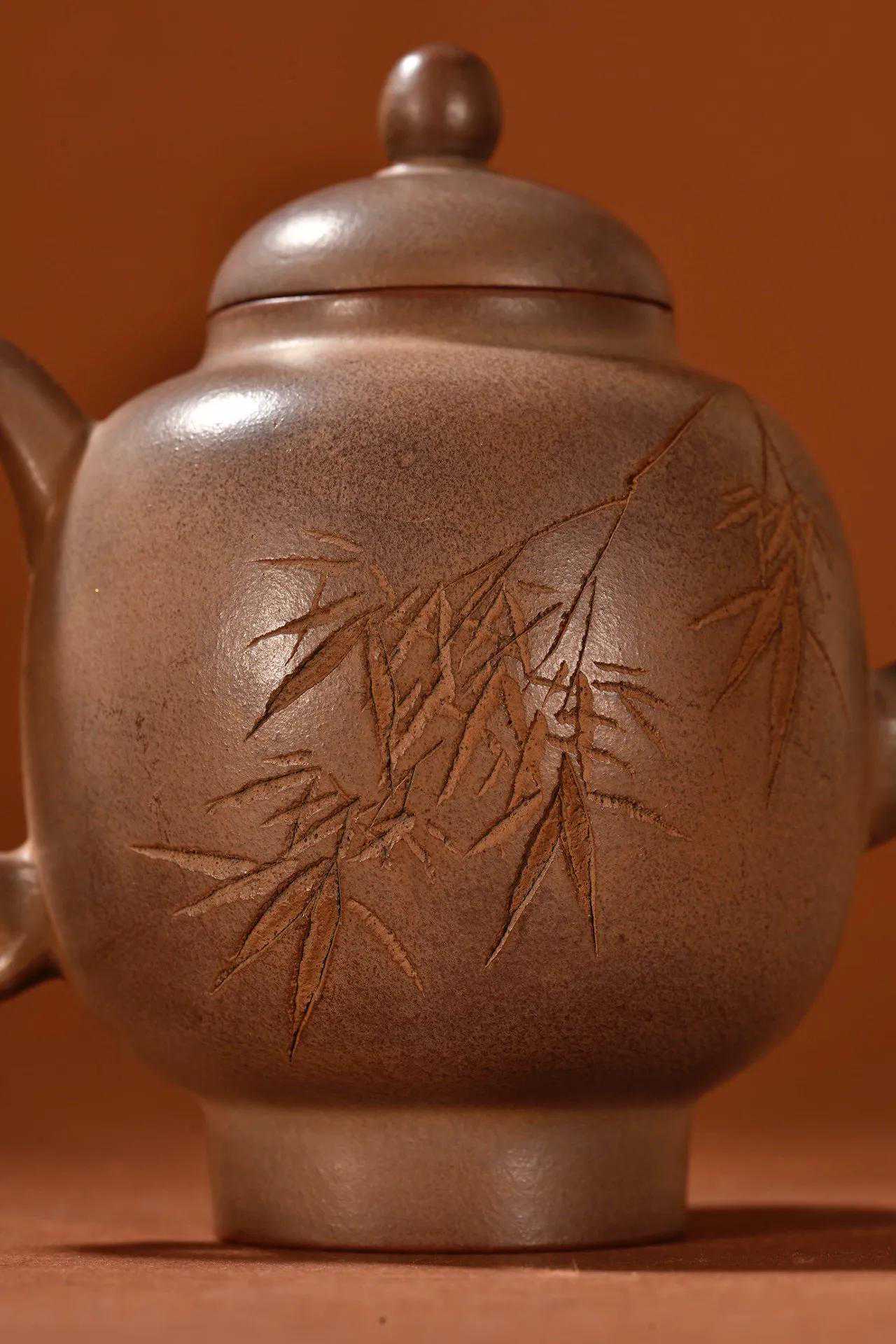 砂料细腻,老艺人制,壶形饱满,雕刻君子纹,图案精美,刻画入微,品相好,自用送礼收藏极佳。