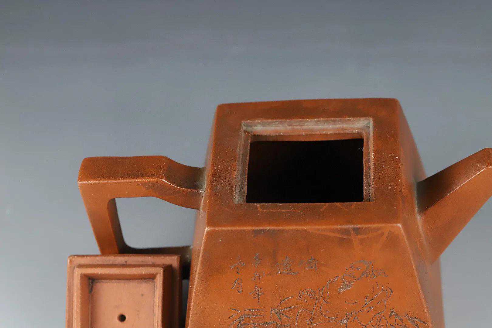 器形典朴,砂料细腻,老艺人制,雕刻线条流畅,出水利落,皮壳一流。