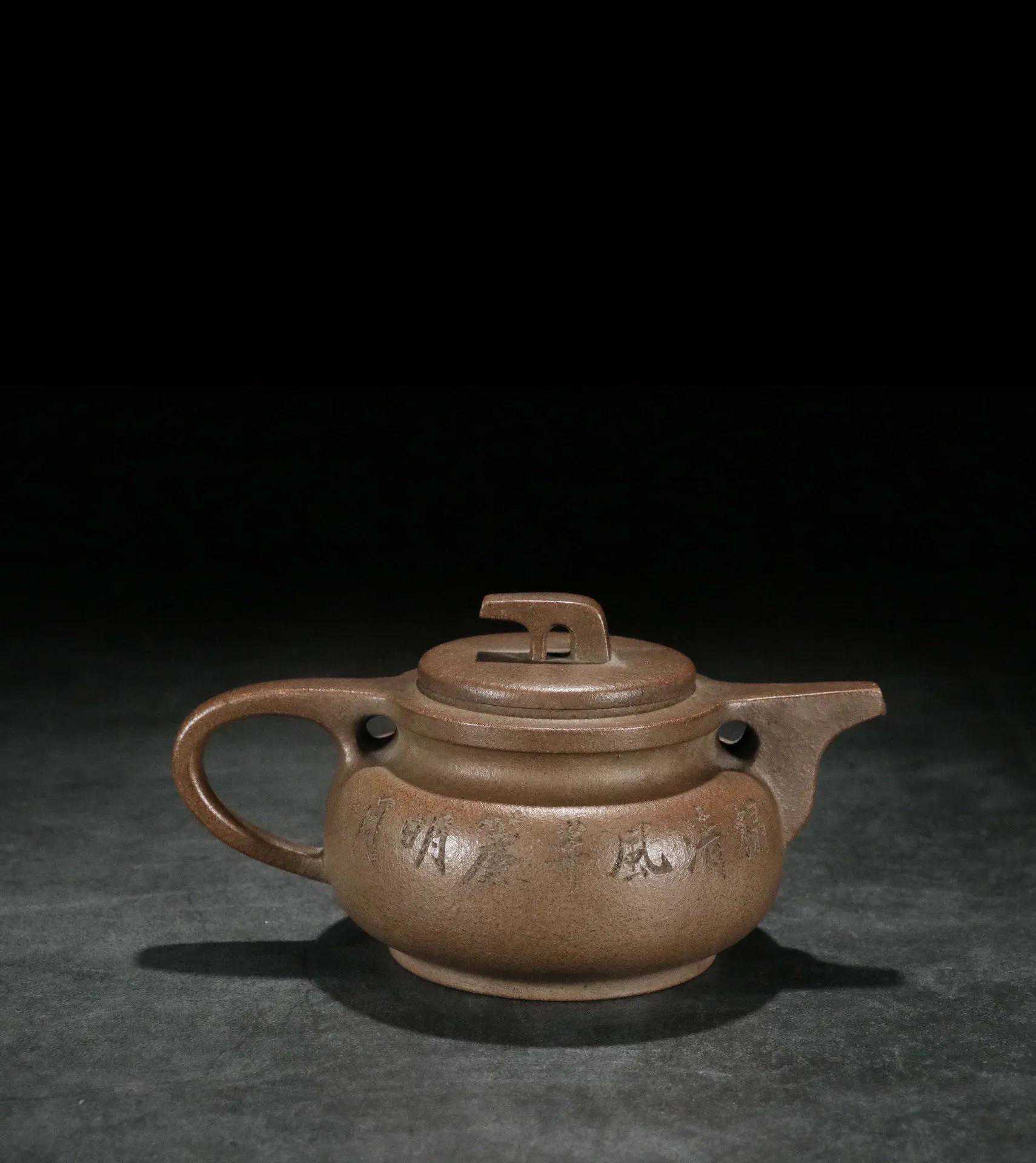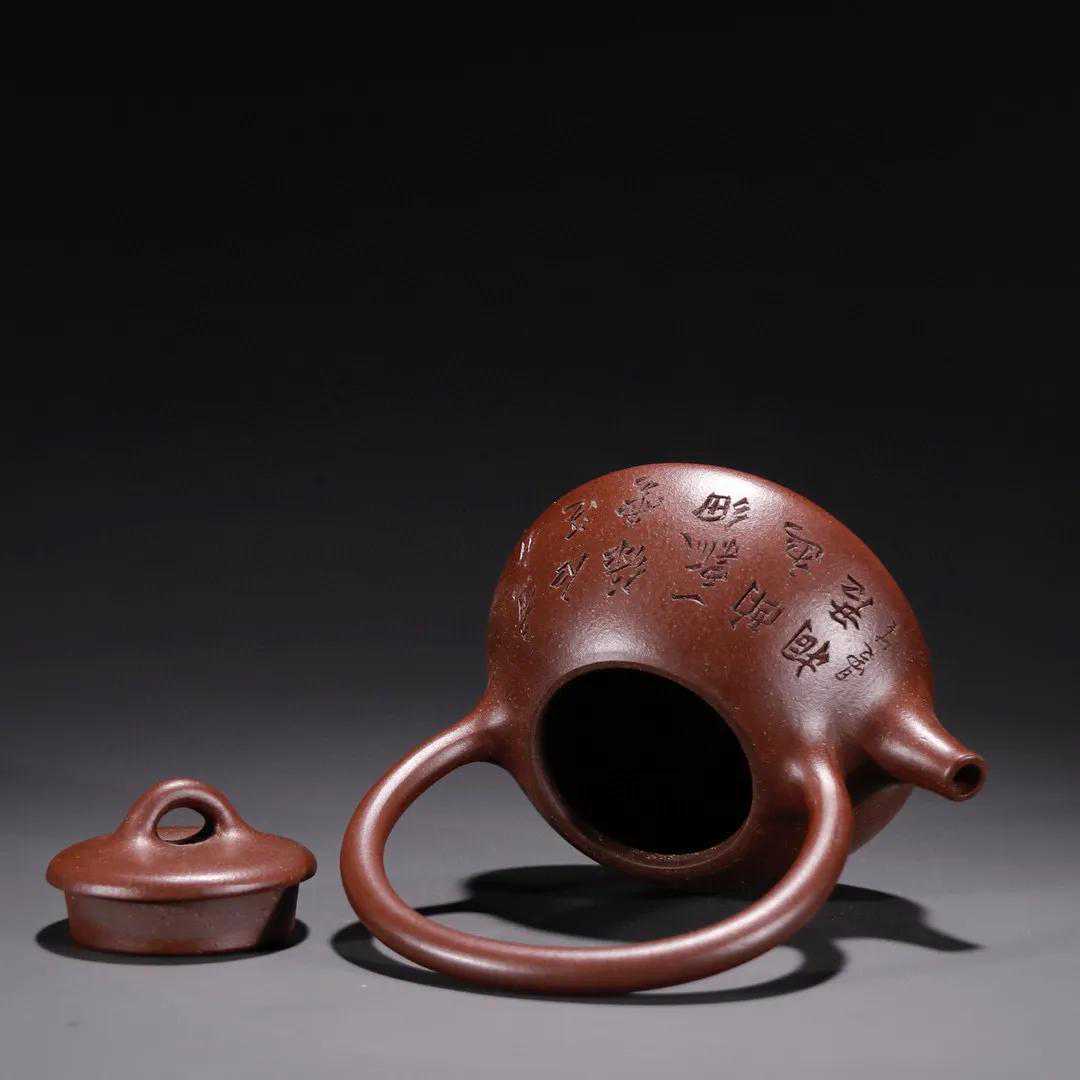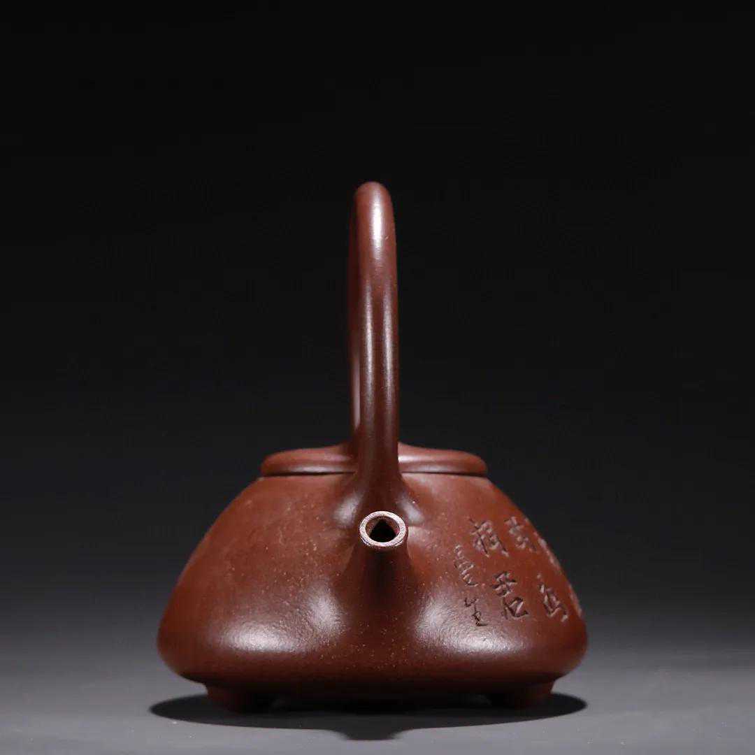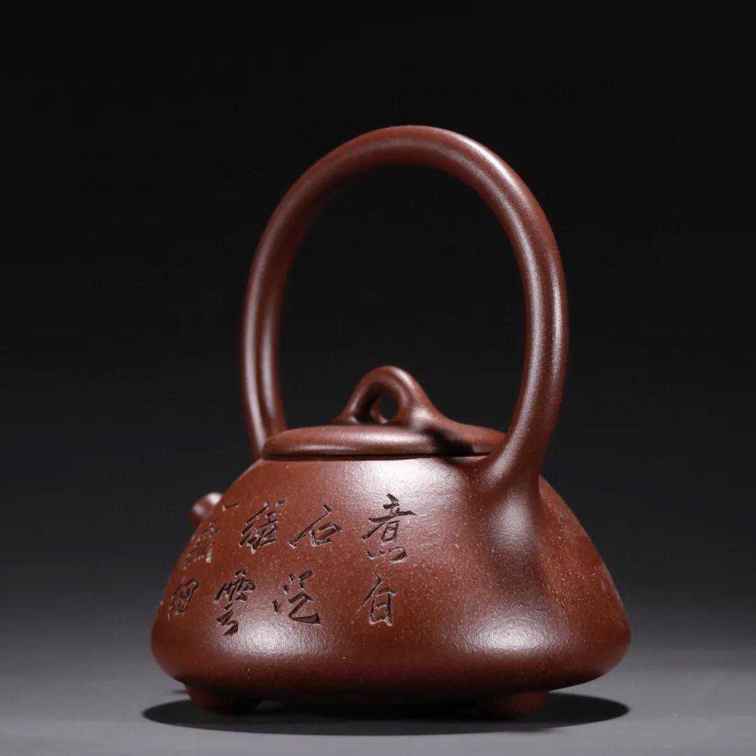 旧藏·韩惠琴款紫砂诗文提梁茶壶。