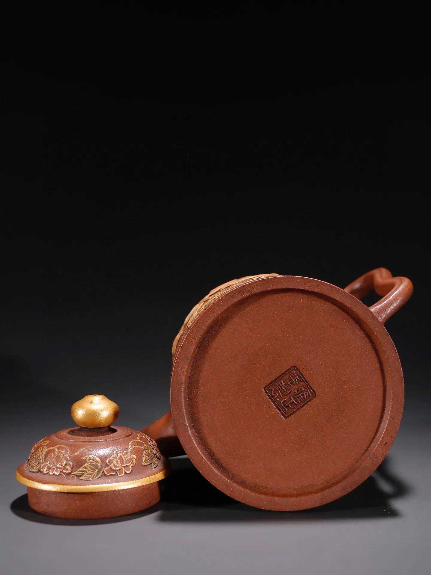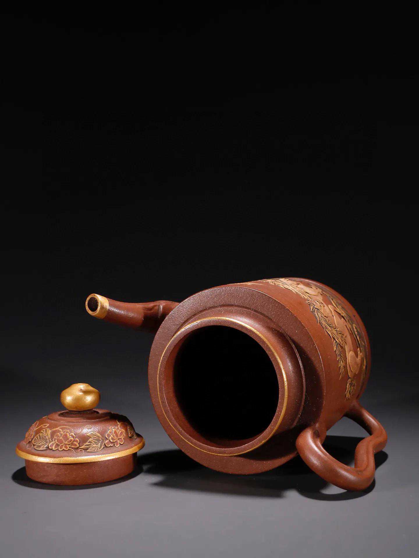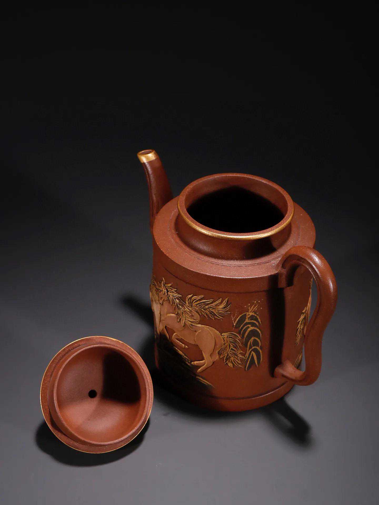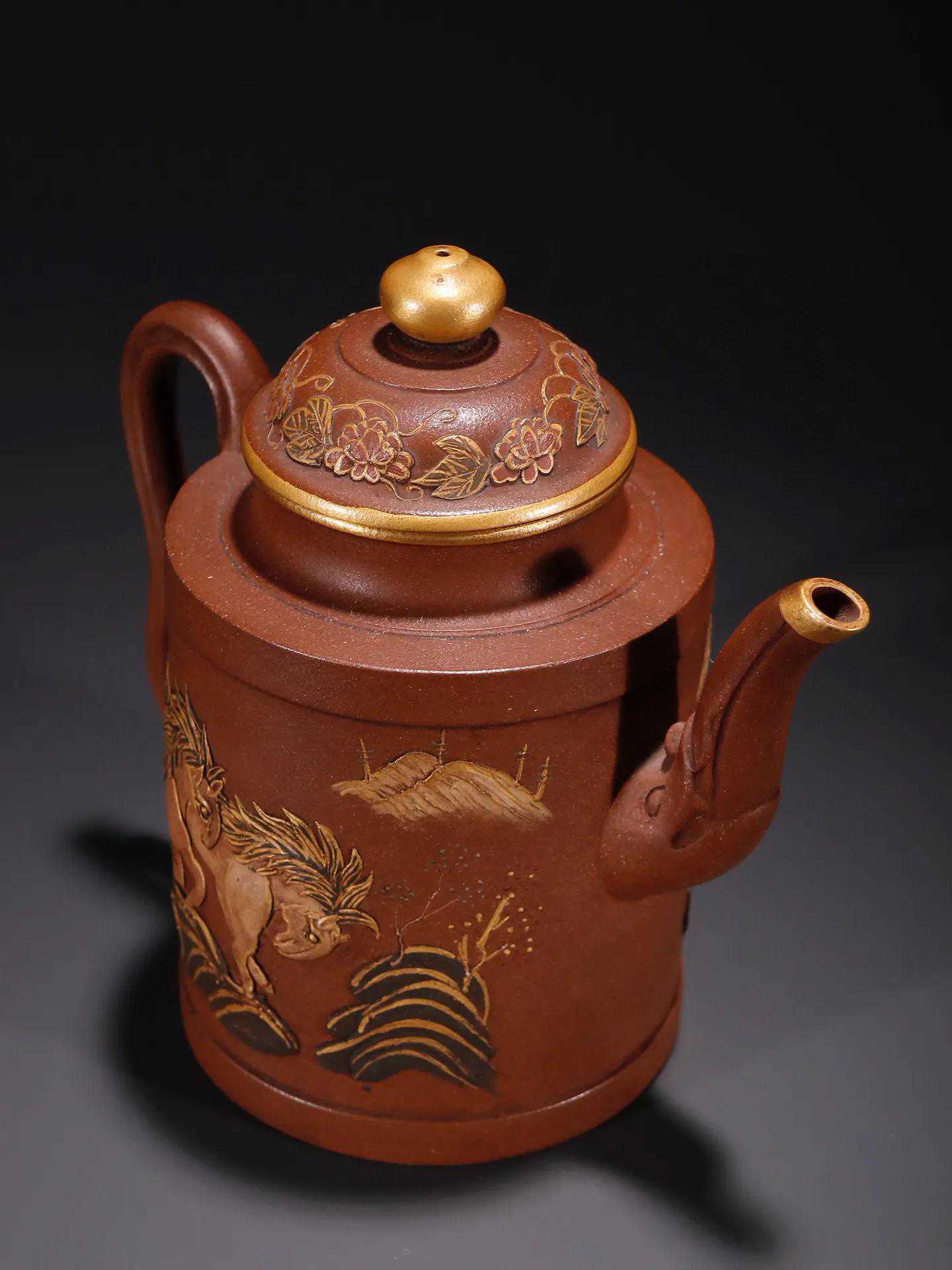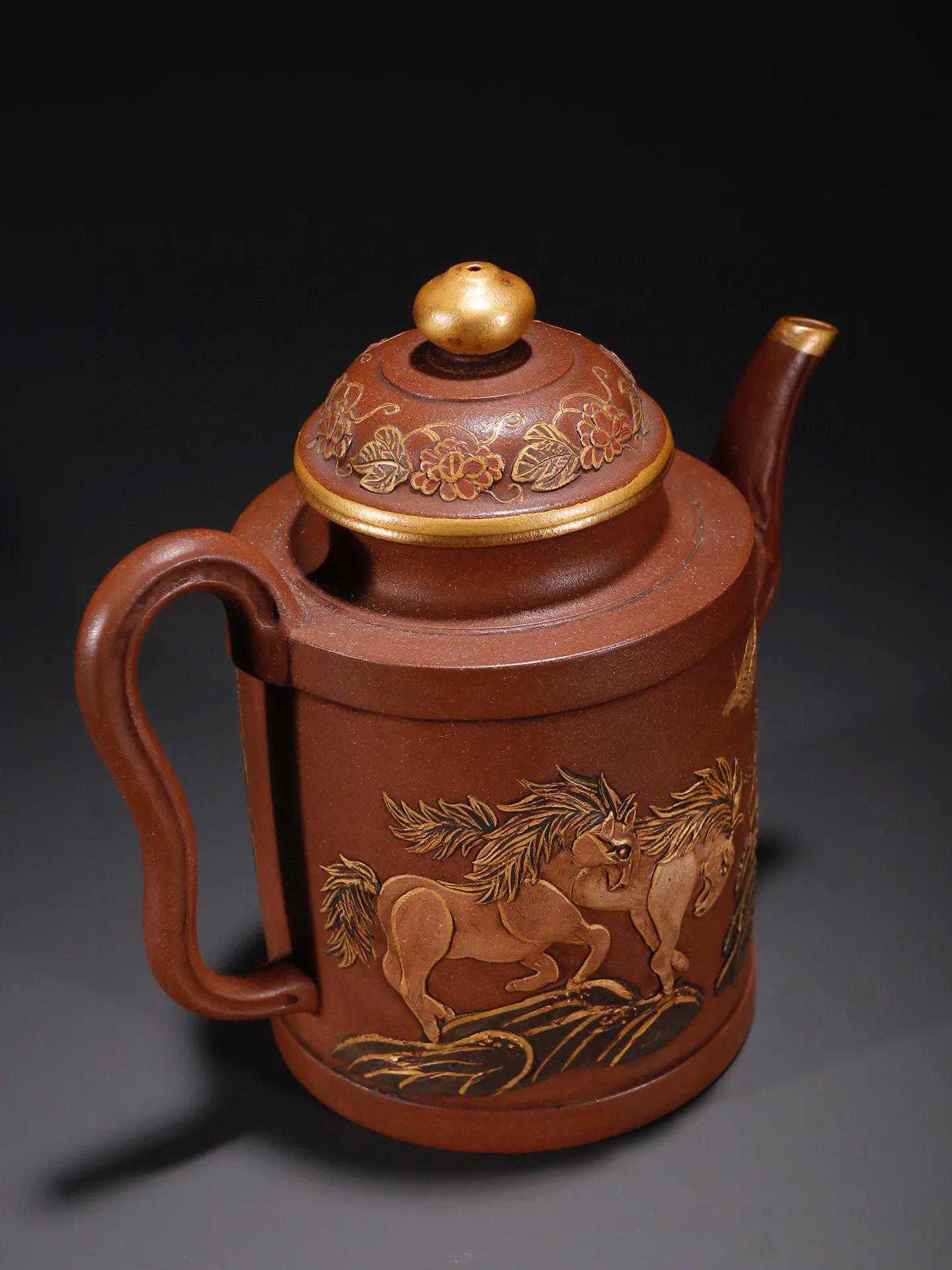 旧藏·雍正款紫砂描金马到成功茶壶。